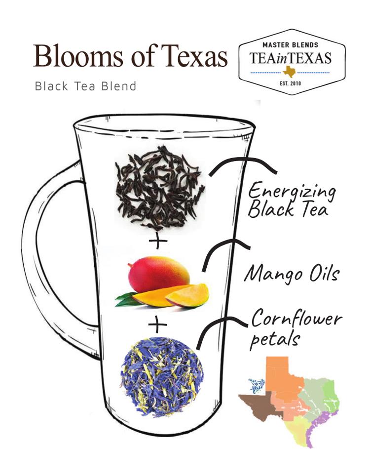 Popular in the prairies of Texas, an all-around favorite black tea with tropical mango oils and blue safflower petals.